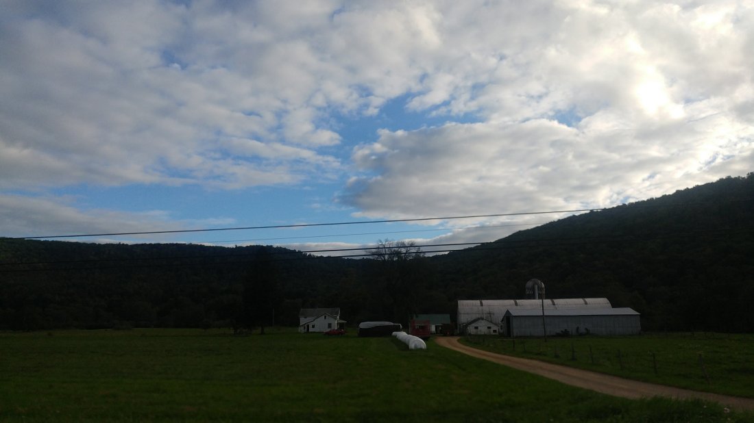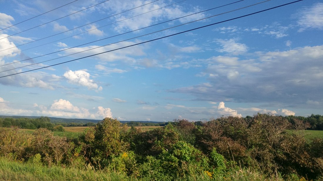 The attendant was great allowing us to plug in. Lee ran down our options: Jeff & Jodi’s 123 miles, “Not going to happen.” Corning 87 miles, “Not going to happen.” Mansfield 57 miles, “Not going to happen.” There was some cloud cover and daylight was evaporating. “I think we’re done for the day.”