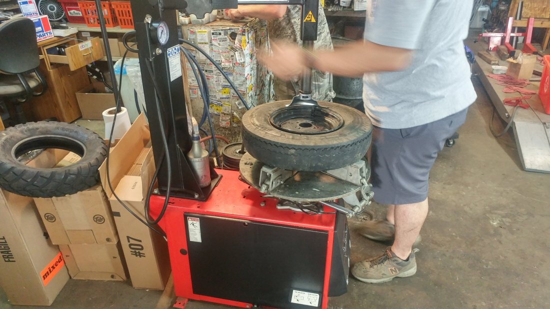 Jimmy had returned empty handed. While I mounted the other half of the tire he talked non stop. It was a bit nerve wracking as I was trying to focus. Pinching the tube was not something I wanted to do.