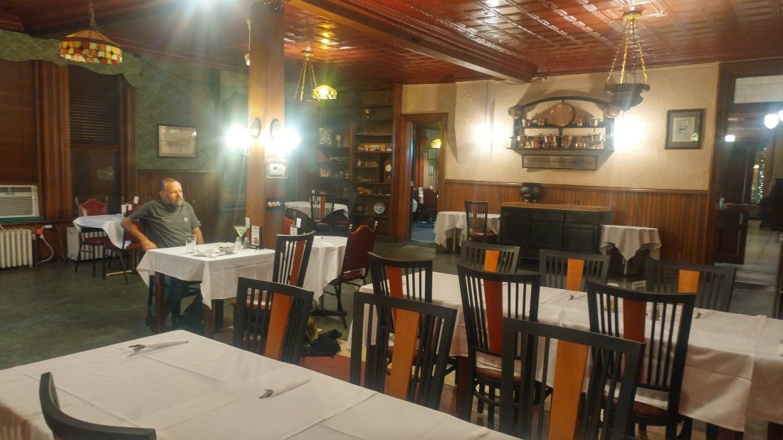 Lee walked across the parking lot to the Waterford Creekside Bar and Grill to see if we could use some power. They said yes so Lee put the battery on the charger.