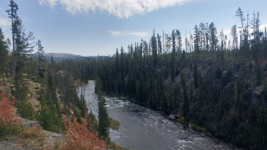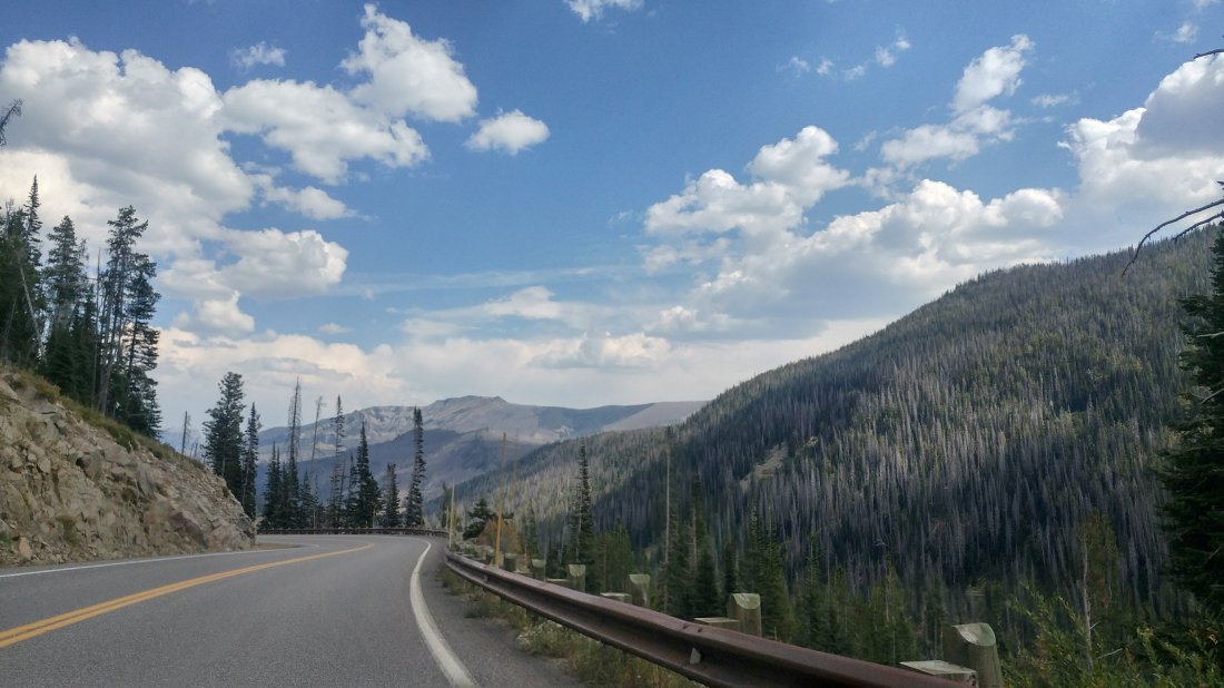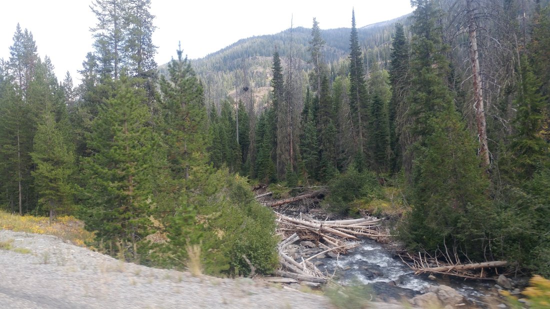 We passed by more of Yellowstone Lake then started climbing. Damage from the fires was extensive. Thankfully the rain cloud never dumped on us.