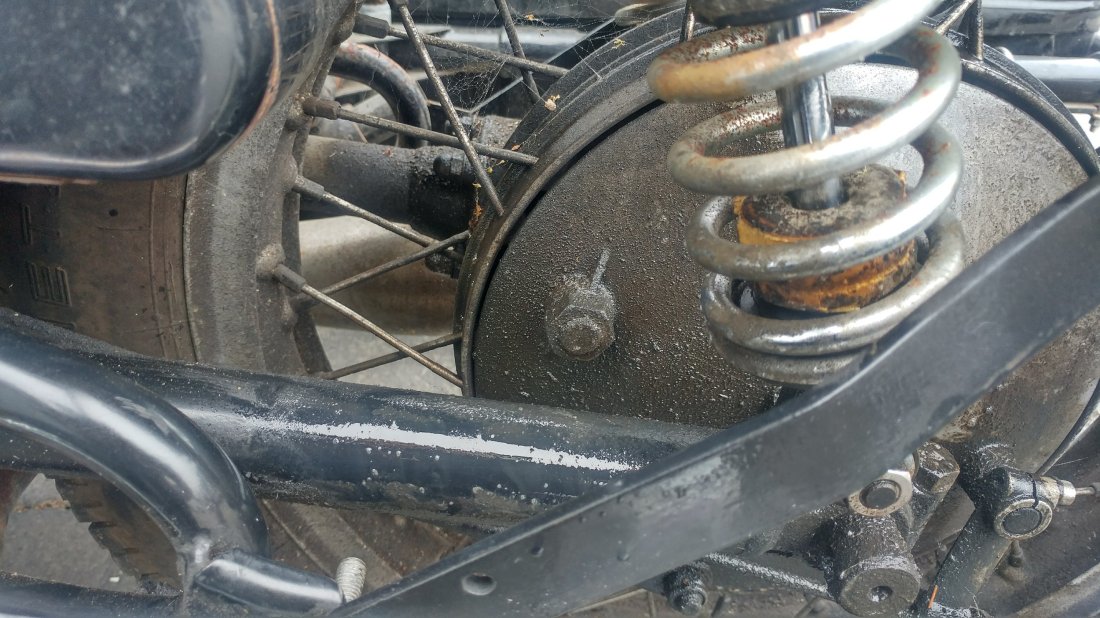 The bike was then spun 180 degrees and the rear wheel removed to check the drive splines. They looked really good so I cleaned them and applied a fresh coat of spline grease.