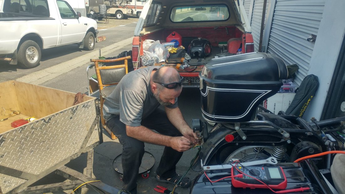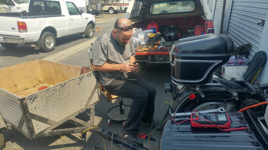 I went to work on the turn signals while Don and Wayne talked. Lee was busy looking at the route maps.